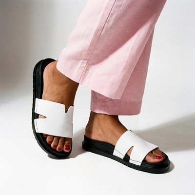 A fehér–fekete színösszeállítás igazi alapdarabbá teszi: könnyen kombinálható sportosabb és elegánsabb szettekhez is. Gyorsan felkapható, mégis csinos lábbeli: jól mutat fehér vászonnadrággal, fekete shorttal, farmerrel, oversized ingruhával vagy egyszínű nyári ruhákkal is.