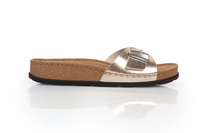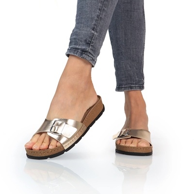 Batz Ibiza női papucs gold/arany színben. Elegáns és trendi lábbeli, könnyed és kivételesen nőies. Az elegáns arany színű pánt modern megjelenést kölcsönöz, amelyet a csillogó arany csat tovább hangsúlyoz, amit mindenki saját igénye szerint állíthat be magának, ékszerdarabnak is beillik, és pompásan koronázhat meg minden összeállítást.