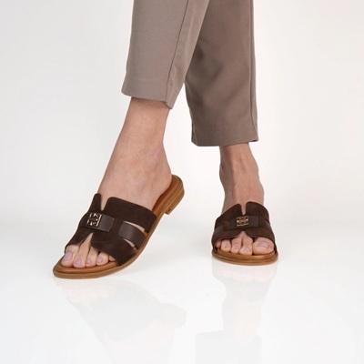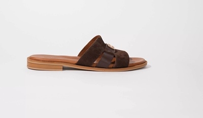 Ez a lábbeli egy igazi aduász minden nő számára. Sötétbarna árnyalatának köszönhetően remekül kombinálható bármilyen színvilággal. A bársonyosan puha bőr felsőrészt egy ízléses fém dísszel is elláttuk, hogy igazán stílusos viseletet nyújtson. A puha, bőr bevonatú lábágy anatómiai kialakítása garantálja a kényelmet a hosszú nyári napokon, legyen szó városi sétáról vagy tengerparti pihenésről.